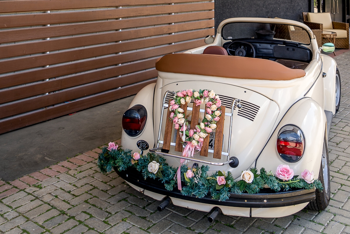 O espaço conta um uma ampla área externa com gramado para casamentos ao ar livre, salão de festa com ar condicionado, camarim da noiva, espaço maquiagem para madrinhas, camarim do noivo, playground, salão de jogos e um amplo estacionamento. A mais recente novidade é o carro da noiva, nosso fusca conversível !!!